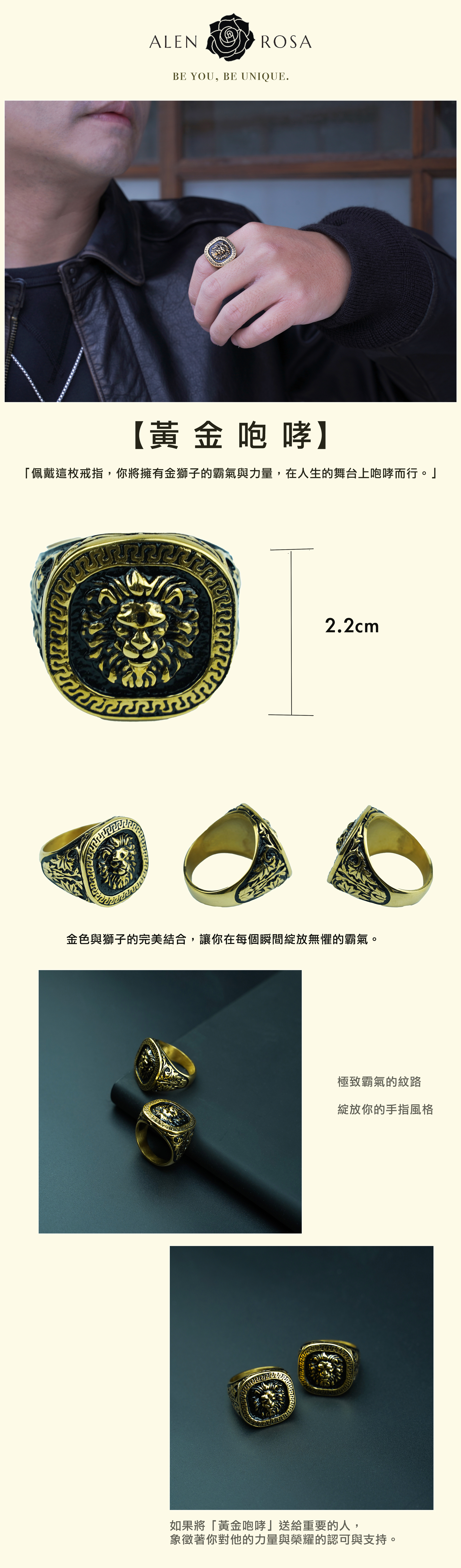 ⚈ 獅子的咆哮代表威嚴與力量,金色更增添了不可忽視的氣場。