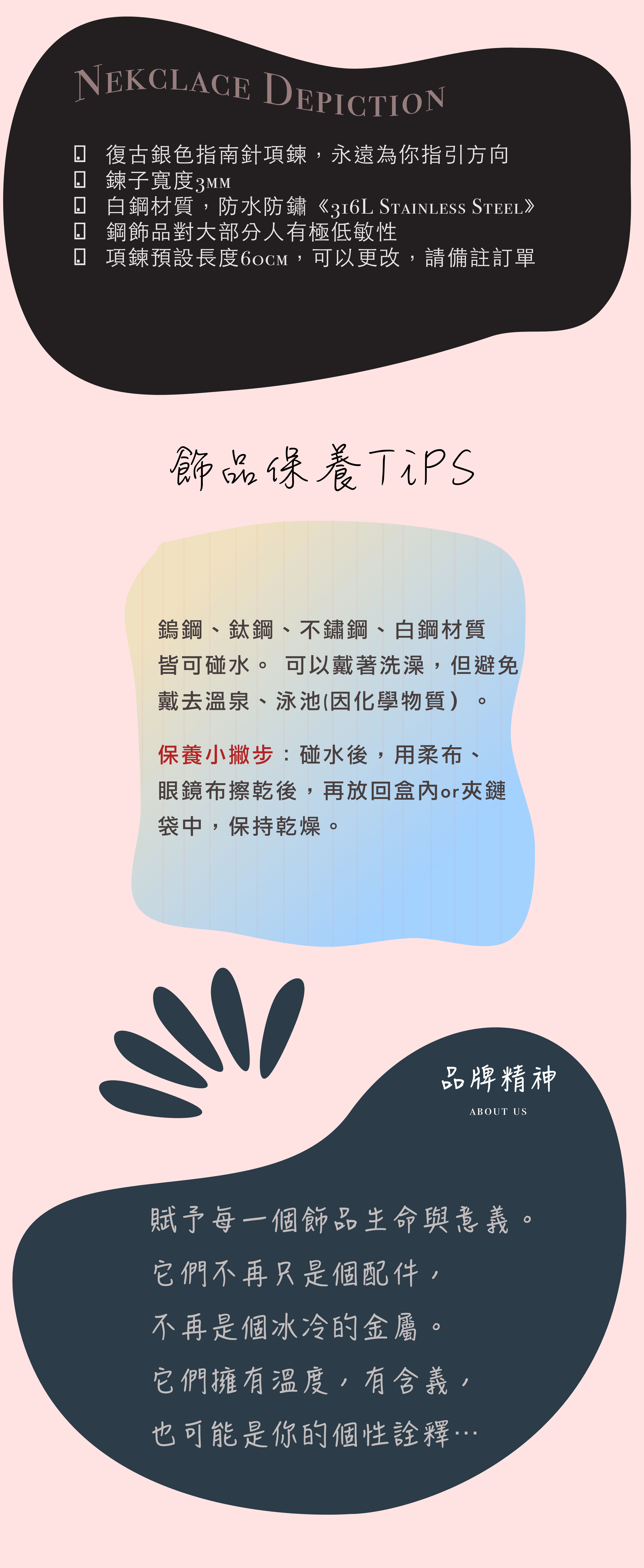 ⚈  復古銀色指南針項鍊,永遠為你指引方向