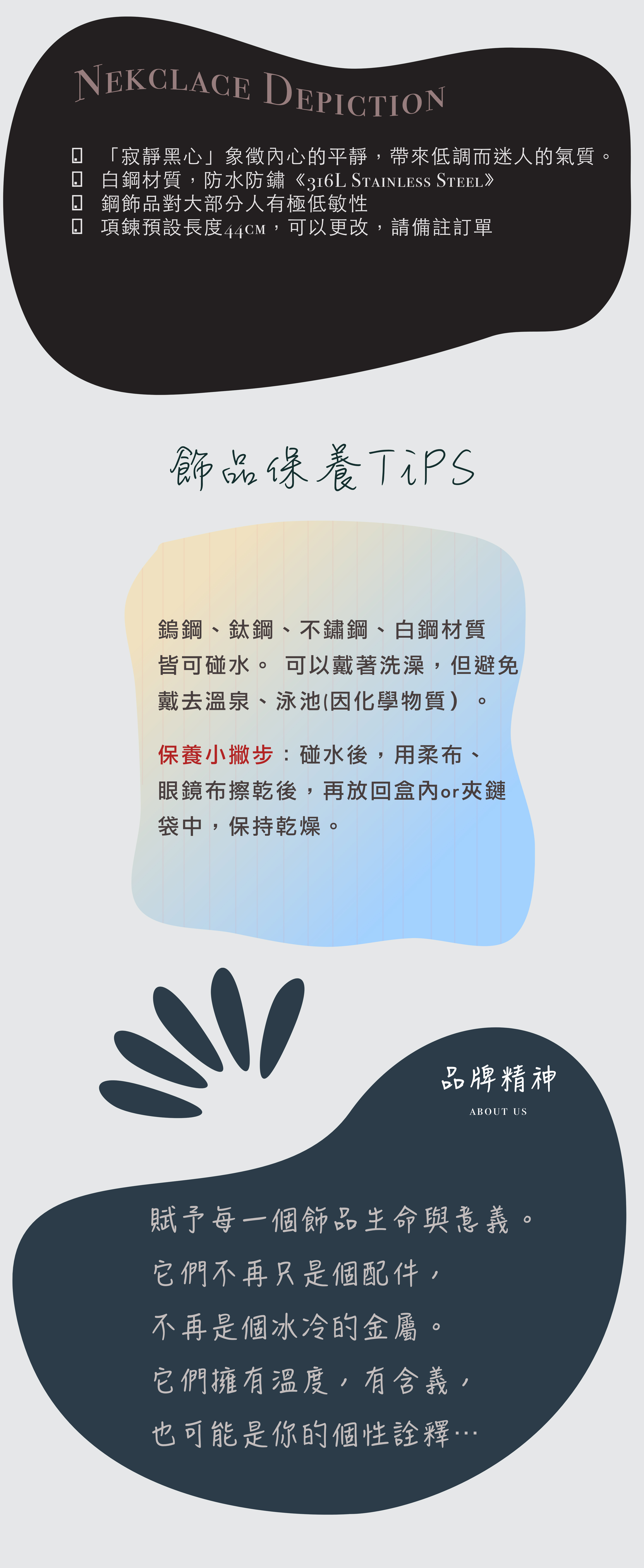 ⚈ 「寂靜黑心」象徵內心的平靜,帶來低調而迷人的氣質。